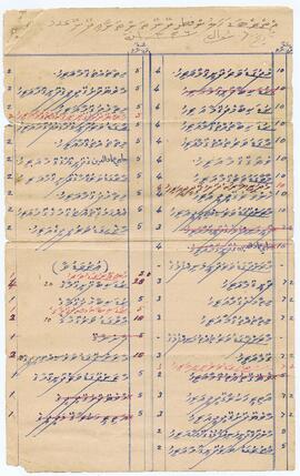 1346ހ ޝައްވާލް 6(1928މ މާޗް 28)ގާ، 'އެތެރެބަޑަހަލުން ފިތުރު ދޭނެ ތަންތަނާއި ދޭނޭ އަދަދު'، މިހެން ސުރުހީކޮށް، ގަނޑު ދިގަށް ދެބައިކޮށް ކޮންމެބަޔެއްގާ 4ފަތި(ކޮލަމް)އަށް، ތަންތަނުގެ ނަމާއި، ނިސްބަތްވާ ދިމާލުގާ، ހަނޑުލުގެ އަދަދު ނާޅި-ލާހިން ޖަހާ ލިސްޓުކޮށްފާވާ ކަރުދާހެއް. #List of places where Zakat Fitr is collected (Size: 13.2" X 8.25")