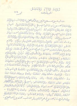 1343ހ ޒުލްގައިދު 22(1925މ ޖޫނު 14)ގާ، ހުސެއިން ސަލާހުއްދީނު ބަންޑާރަނައިބުގެ ޝަރީޔަތު މަޖިލީހުގާ، ކުޑަނެވި ހަސަން ކަލޭފާނުގެ ހުރިހާ ދަރިން، މާފަންނު ބޮޑުހިރުނދުގަސްދޮށުގާ އޮތް، އެއްލިފައިދޮންބީފާނުގޯއްޗޭ ކިޔާ ގޯތިން އެމީހުންގެ ބައްޕަޔަށް ވީހާ ތަނެއް، އެމީހުންގެ އެއްބަފާ އަހުމަދު މަނިކުއަށް ހިބައިން ދީފި ކަމަށް ބުނެ، އެތަނުގެ އިމާއި މިން ބަޔާންކޮށް އެކަމުގެ މައްޗަށް ފަތެއް ލިޔެދެއްވުމަށް އެދުމުން؛ އެކަން ބަށްލަވާ، 1285ހ(1868މ)ގާ، އެތަނުގެ އިމާއި މިން ހިމަނާ، އަލްގާޒީ އިބްރާހީމް މުހީބުއްދީނު އުއްތަމަ ފަނޑިޔާރު ލިޔެދެއްވާފާވާ ފަތުން، އެގޯއްޗަކީ، ކުޑަނެވި މާފަތްކަލޭފާނުގެ ދަރި އިބްރާހީމް ކަލޭފާނަށް މިލްކުވެއޮތް ގޯއްޗެއް ކަމުގާ ސާބިތުވެ، އަދި އޭގެ ފަހުން އެގޯތީގެ 2/1 ބަންޑާރަވެ، އަނެއްބައި، އިބްރާހީމް ކަލޭފާނުގެ ދަރި މޫސާ ކަލޭފާނަށް މިލްކުވެ، އެނާގެ ދަރި އިސްމާއީލް ކަލޭފާނަށާއި، ކުޑަނެވި ކަމަނަޔަށާ މިލްކުވެފާވާކަން ސާބިތުކުރައްވާ، އެބައިގެ 3/2، އިސްމާއީލް ކަލޭފާނަށް އަދި އަނެއްބައި ކަމަނަޔަށް މިލްކުވެފާވާ ކަމަށާއި، އިސްމާއީލް ކަލޭފަނުގެ ބައި، އޭނާގެ ދަރި އަހުމަދު މަނިކުއަށް މިލްކުވެއްޖެ ކަމަށާއި، އެތަން، ބޮޑުހިރުނދުގަސްދޮށުން އަތިރިޔަށްދާ މަގާ ދެކުނުން އިންވެ، އަދި އެމަގުން ކުޑަކޮށްޓަށް ދާންއޮތް ގޯޅީޔާ އިރުން އިންވެ އޮތްކަމުގާ އެތަނުގެ އިމާއި، މިން ބަޔާންކޮށް، އައްނައިބު މުހައްމަދު ލިޔެދެއްވި ފަތުގެ ނަކަލެއް. އަދި 1354ހ ޝައްވާލް 24(1936މ ޖަނަވަރީ 19)ގާ، މަތީގާ ނިސްބަތް އެވާ ގޯއްޗާ، އެތާހުރި ގެޔާ، އެތަނުގާ ވާހާ ތަކެއްޗާ، ކުޑަނެވި އަހުމަދު މަނިކު، ތަކަންދޫ ހުސެއިން ކަލޭފާނަށް ވިއްކާފާ އޮއްވާ، އެގޭގާ ހުރި ވިޔަފާރި މުދަލާއެކު، ހުސެއިން ކަލޭފާނުގެ ނީލަމުން، ދަންވަރުގޭ ނަހުދާ ކުޑަދޮންމަނިކު، -/810 ރުފިޔާއަށް ގަނެ، އެ ގޯއްޗާއި ގޯތީގާވާހާ ތަކެއެއްޗެއް، އެ ކުޑަދޮންމަނިކުއަށް މިލްކުވެއްޖެކަމުގާ، މަތީގާ ނަކަލުކޮށްފާވާ ކަމުގަ ބުނެވިފާއެވާ ފަތުގެ ނުފުށުގާ، ޝަރީޔަތުގެ މަޖިލީހުން ލިޔެފާވާ ލިއުމުގެ ނަކަލެއް. A copy of the report originally written on 14 June 1925 regarding the ownership of the land Maafannu Jeymuge Goathi (Size: 8.85" X 6.7") Chief Justices - Al Ghaazee Hussain Salahuddin K.Male' - M.Jeymuge Goathi (Housing Plot) - Private Property